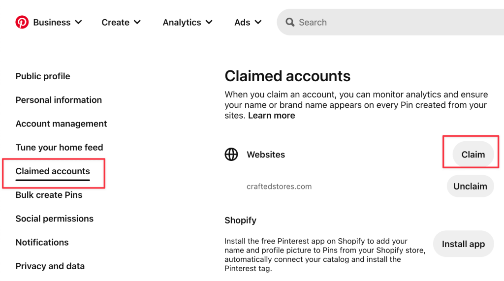 - Enter Your Etsy Shop URL: Enter your Etsy shop URL in the provided field and click “Claim.” Pinterest will guide you through the process of verifying ownership. Follow the instructions carefully to successfully claim your Etsy shop.